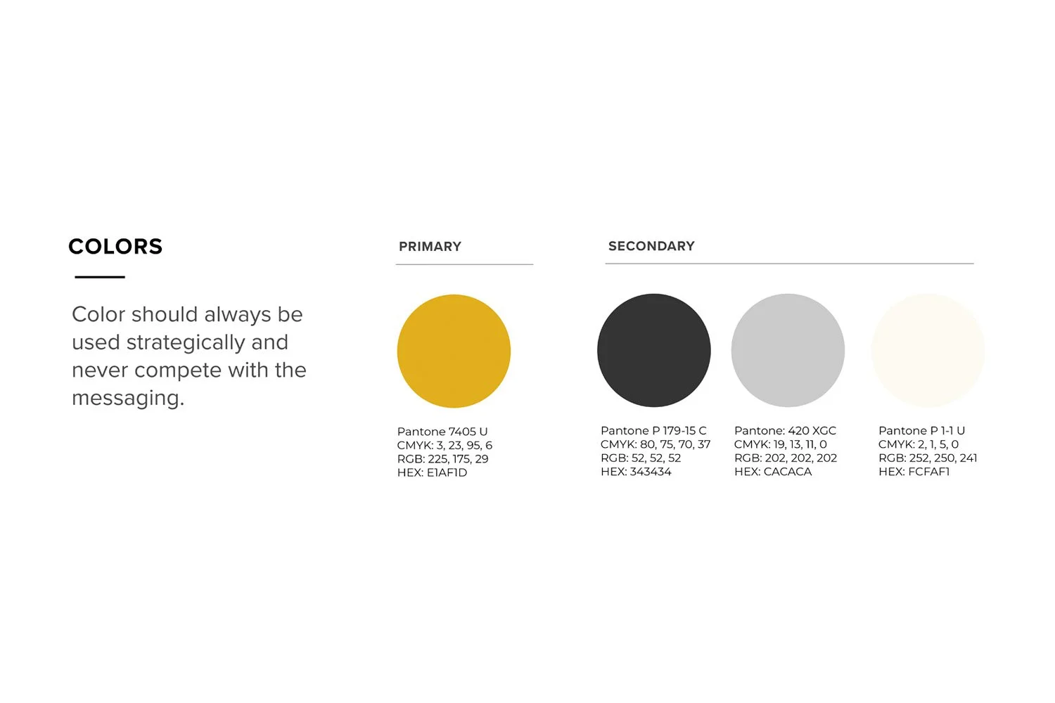The resulting monogram-style logo was designed to feel modern yet timeless, combining bold letterforms with architectural balance. A complete identity system was developed around the mark, including logo lockups, a refined typographic hierarchy using Proxima Nova and Tisa Pro, and a versatile color palette anchored in a warm, coastal-inspired yellow.