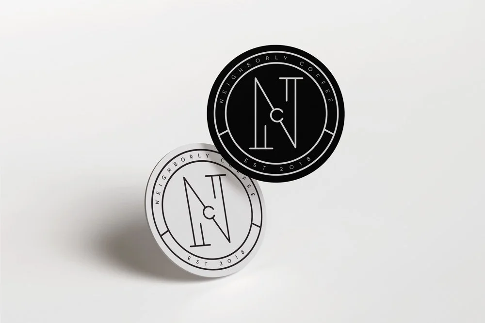 Designed to complement the cups, the coasters extend the brand's identity with a minimalist aesthetic. The logo-centered approach on the coasters ensures that the brand mark remains visible and impactful across touchpoints. Crafted in both black and white, the coasters maintain the brand's clean, cohesive look, offering customers a tactile reminder of Neighborly Coffee’s quality and attention to detail.