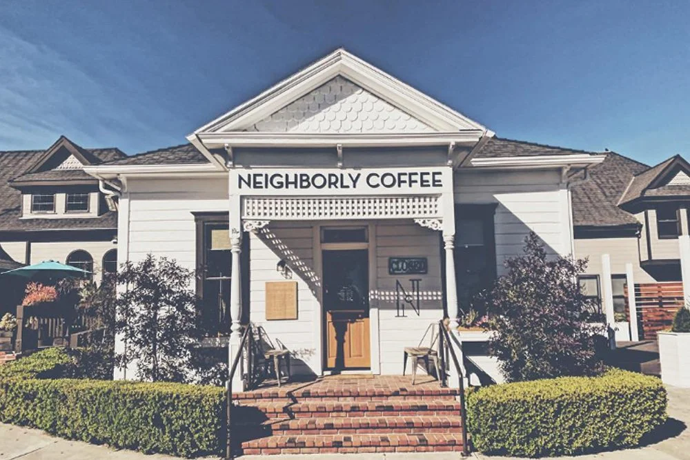 The storefront signage was crafted to stand out without overpowering the charming architecture of the building. Clean and minimal, the design complements the structure, inviting locals and visitors alike with a balanced mix of classic and contemporary elements. Positioned prominently, the Neighborly Coffee sign serves as a memorable landmark that seamlessly integrates into the aesthetic of San Juan Capistrano.