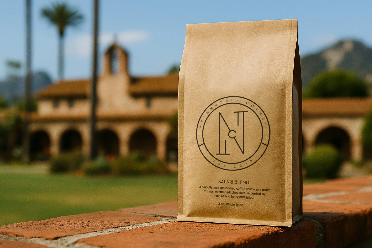 The coffee bag design embraces a warm, natural aesthetic that elevates the Neighborly brand with a clean and modern presentation. The kraft paper finish exudes a handcrafted, eco-conscious vibe, while the bold circular brand mark anchors the layout with confident simplicity. Minimalist typography allows key product details—such as blend name and tasting notes—to be easily scanned without distraction. The overall design strikes a perfect balance between artisanal charm and professional polish, making it visually compelling and retail-ready.